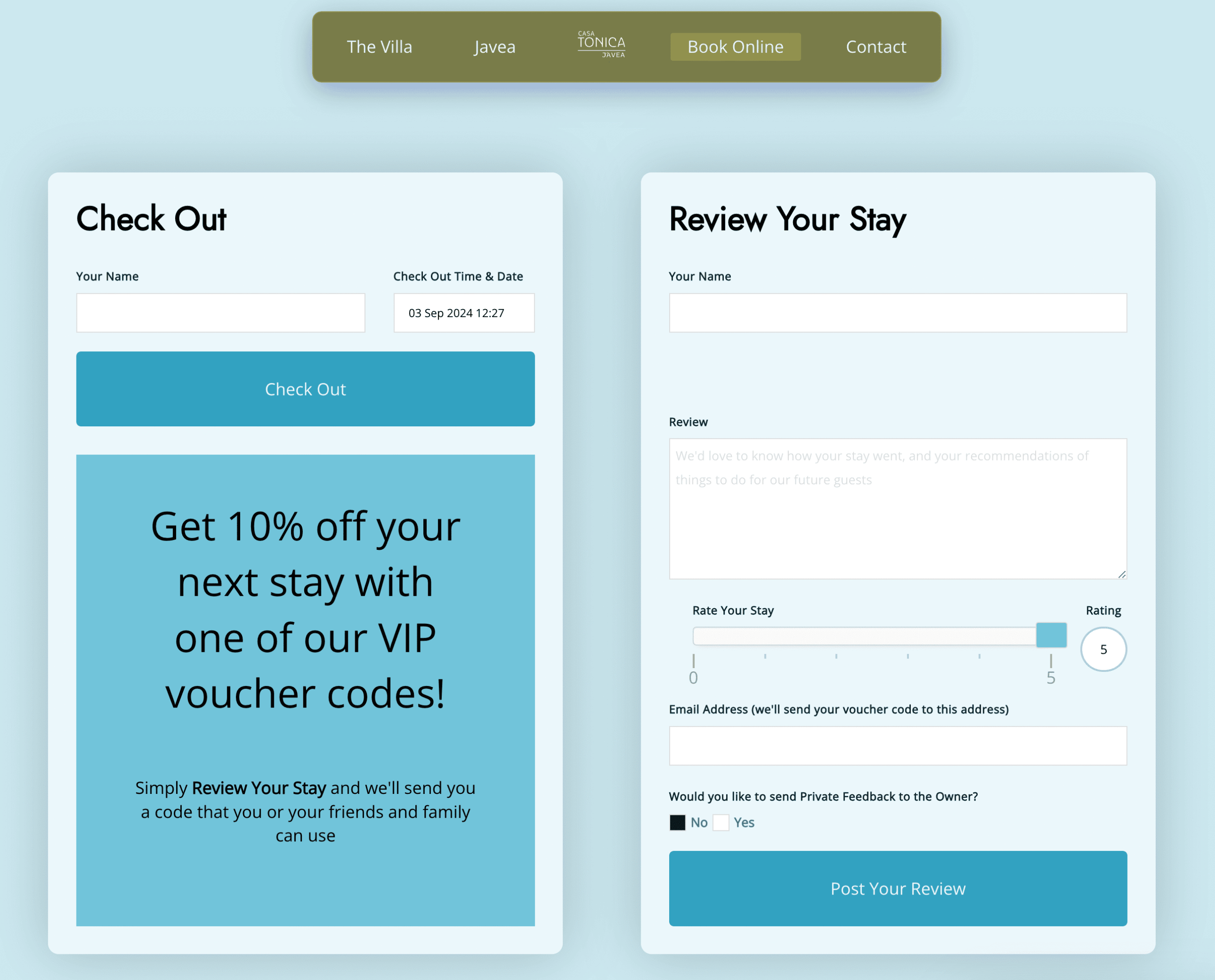 And there’s much more. Underneath the hood, our websites work hard for you to gather more bookings, contacting past guests with incentives to return for another stay.
