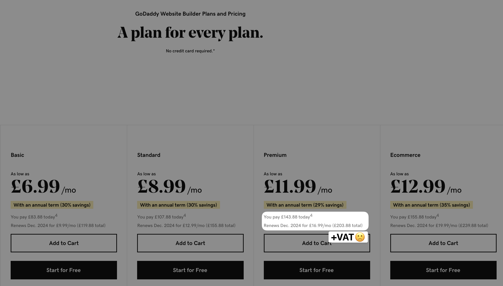 Godaddy have multiple hosting services Basic/Standard/Premium/Ecommerce. The Premium offering is the cheapest service they offer with a booking facility and functionality that will allow you to accept card payments so let’s see how it compares!
