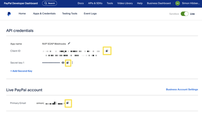 In order to link your Paypal Business Account with your website, you will need to send us 3 pieces of information from your Paypal Business account